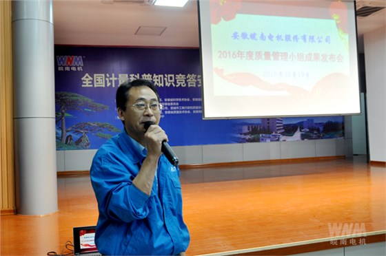 10月19日下午,由皖南電機工會和質(zhì)量與企業(yè)管理部聯(lián)合舉辦的2016年度質(zhì)量管理小組成果發(fā)布會在公司大禮堂召開。經(jīng)過質(zhì)管部對各部門上交的QC成果與信組進行篩選,來自股份公司、威能公司、同華公司等生產(chǎn)單位的4項QC成果與5項爭創(chuàng)質(zhì)量信得過班組成果在會上進行了交流發(fā)布。皖南電機副董事長管兵,總經(jīng)理陳學鋒,副總經(jīng)理許權、許鋒、孫躍、李超等公司高層擔任此次成果發(fā)布的評委,董事長陳根喜也全程觀看了發(fā)布。